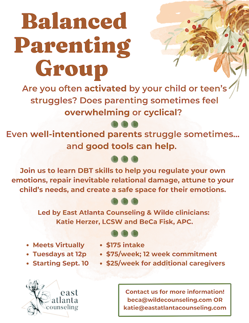 At Wilde Counseling, we believe that healing often comes when we brave the wilderness within and around us. With an emphasis on nervous system support, we help clients heal from traumatic events, past or present, and experience more connection in their lives. *In-person counseling available in North Druid Hills and virtual counseling available throughout Georgia and Florida.
